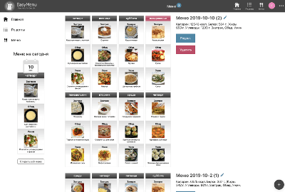 Новый EasyMenu 3 - это полноценный планировщик меню с возможностью добавления своих рецептов и своих ингредиентов. Новой версией можно пользоваться через интернет браузер, или установить ее на мобильный телефон.